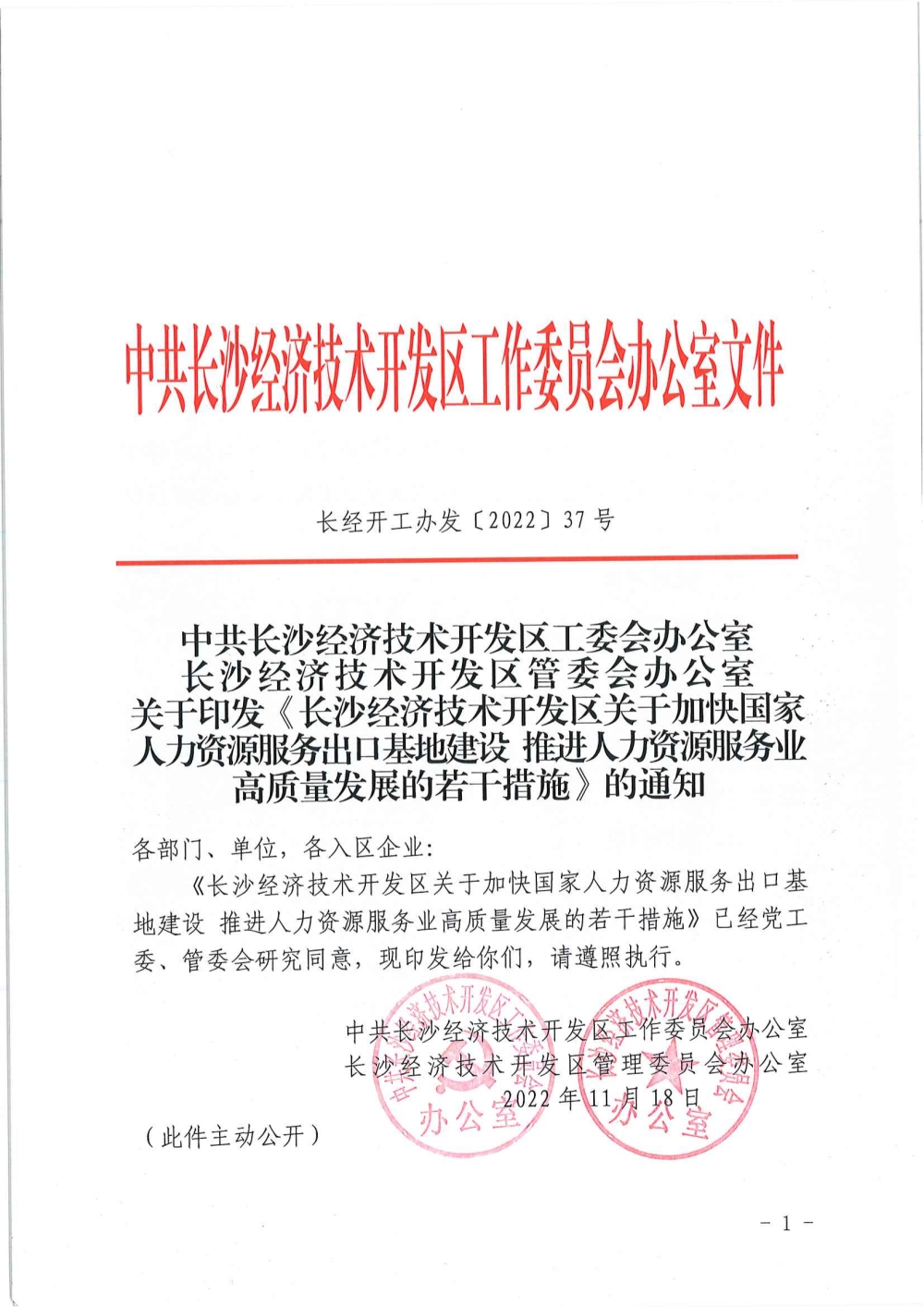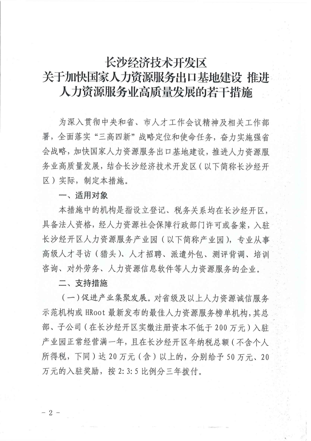 为加快中国长沙人力资源服务出口基地建设,推进人力资源服务业高质量发展,近日,长沙经开区出台《关于加快国家人力资源服务出口基地建设 推进人力资源服务业高质量发展的若干措施》。